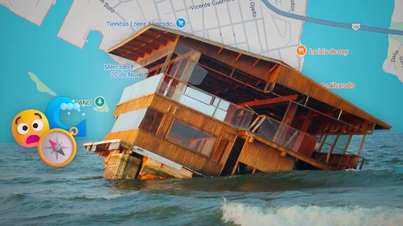 El restaurante El Atracadero que estaba ubicado en Tuxpan, Veracruz, fue arrancado de su sitio de origen por la corriente del desbordamiento del río Cazones y viajó hasta 500 kilómetros.